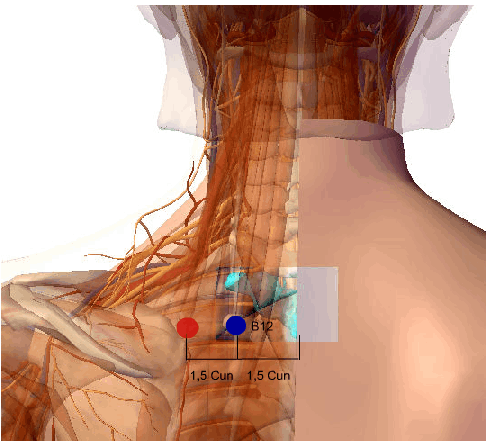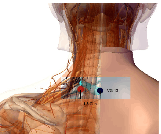 Cervicalgia: VG-20 ( Baihui ), B-11 ( Dashu ), VB-20 ( Fengchi )