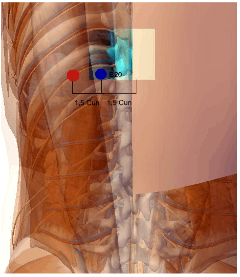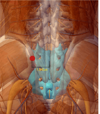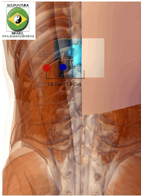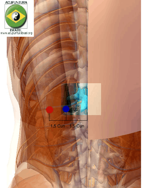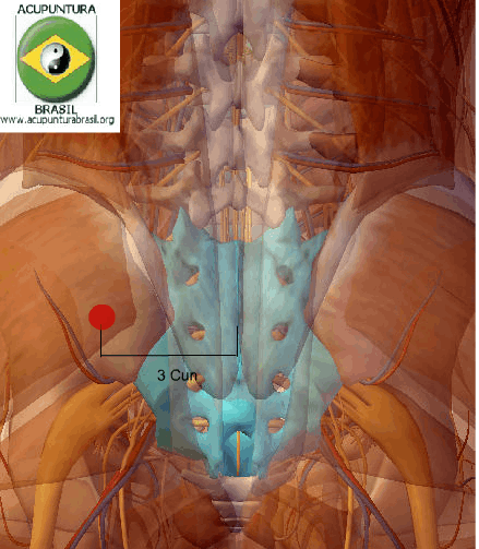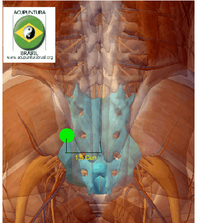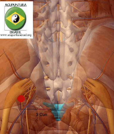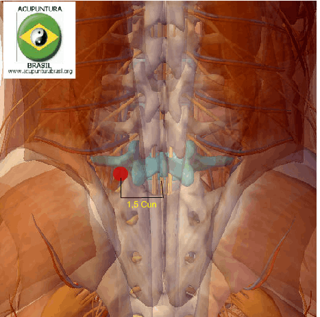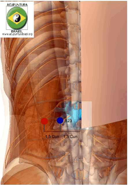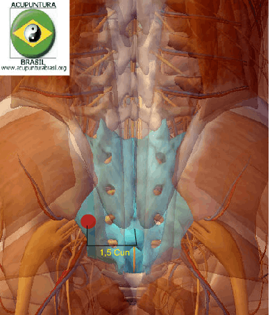 Disúria, espermatorréia: B-23 ( Shenshu ), B-32 ( Ciliao )