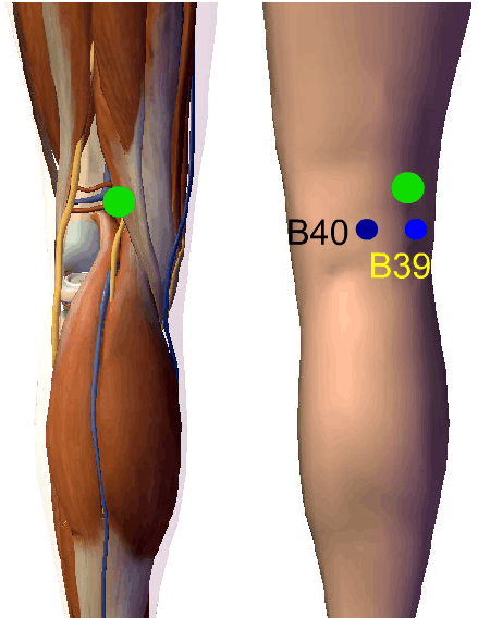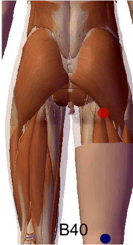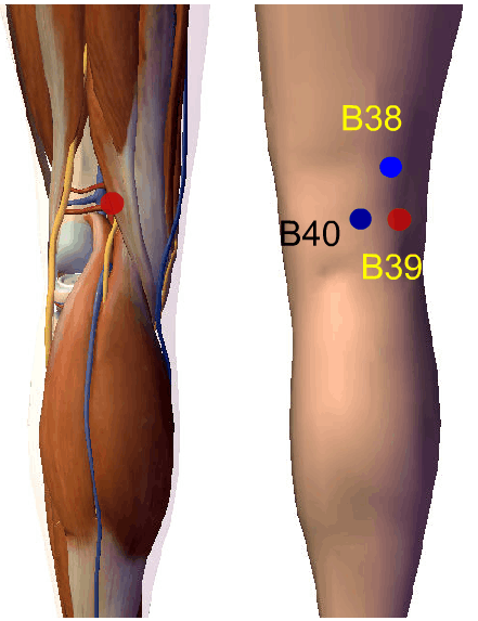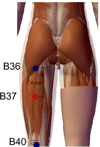 Esquizofrenia depressiva e cefaléia: VG-12 ( Shenzhu ), B-40 ( Weizhong ), B-53 ( Weiyang ), B-60 ( Kunlun )
