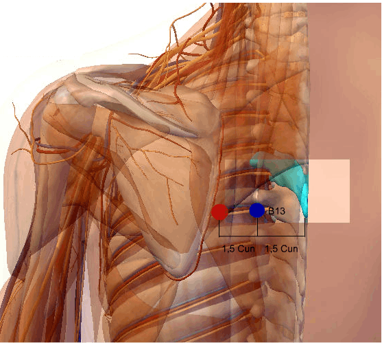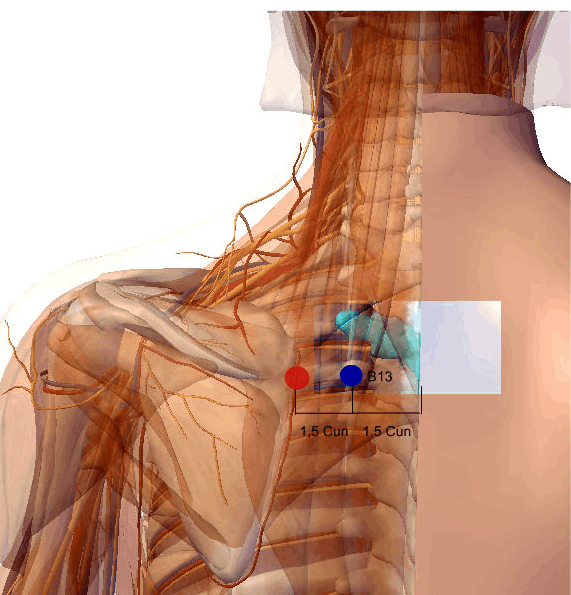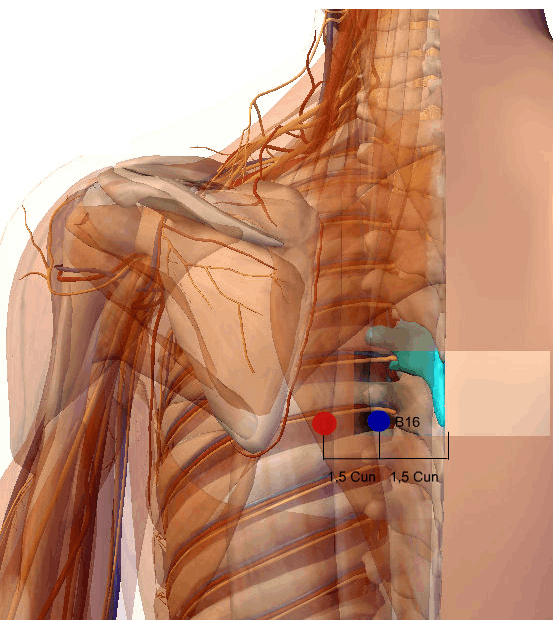 Os outros pontos citados no Nei Ching são: B-6 ( Chengguang ), B-7 ( Tongtian ), B-8 ( Luoque ) e B-9 ( Yuzhen )