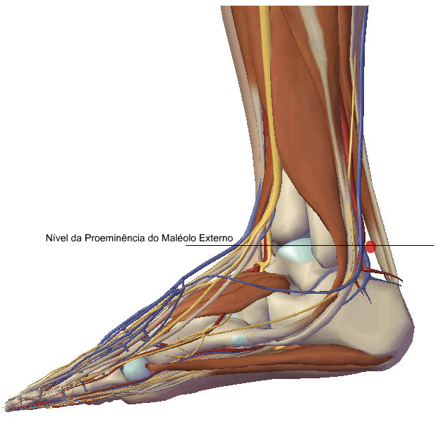 Situa-se a meio tsun distal ao maléolo lateral, numa reentrância ósssea do calcâneo, na linha onde muda a cor da pele, entre as regiões plantar e dorsal do pé.