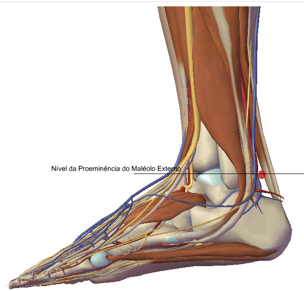 Situa-se na margem lateral do pé, atrás da tuberosidade do 5º metatarsiano, numa reentrância óssea, na linha onde muda a cor da pele, entre as regiões plantar e dorsal do pé.