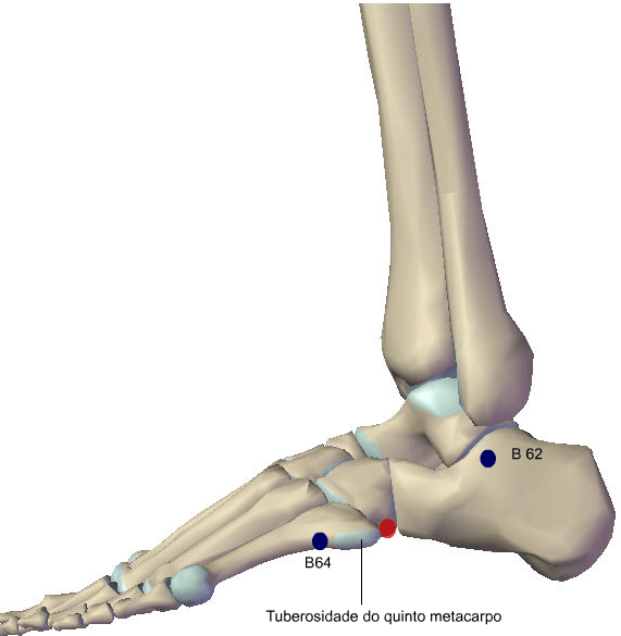 Estimular nos casos de distúrbios energéticos do Canal de Energia da Bexiga; causados pela parada da circulação energética