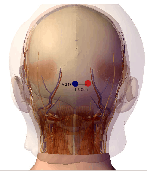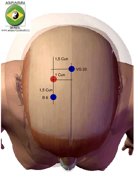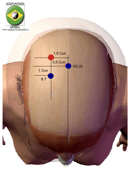 Situa-se a um tsun para frente e a um e meio tsun lateralmente ao VG-20 ( Baihui ).