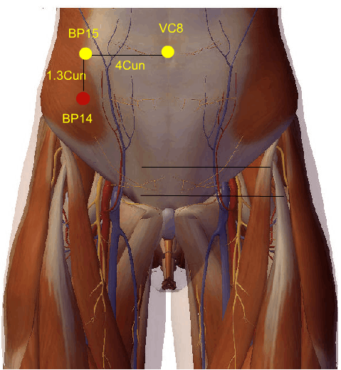 Situa-se na face ântero-lateral do abdome, a quatro tsun lateral à linha média, numa horizontal que passa pelo VC-7 ( Yinjiao ).