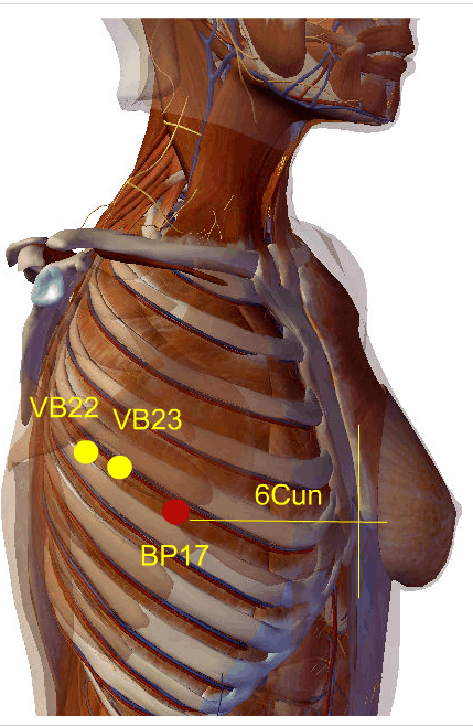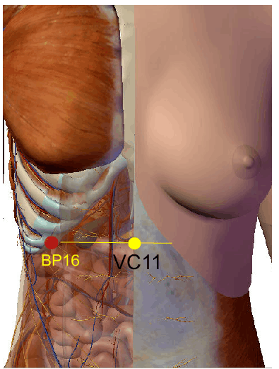 Situa-se no 5º espaço intercostal, a seis tsun da linha média, na horizontal que passa pelo ponto de Acupuntura VC-16 ( Zhongting ).