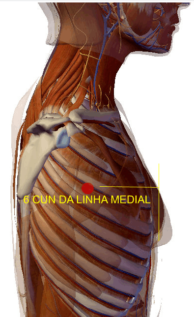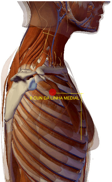 Situa-se na linha axilar média, no 7º espaço intercostal, a seis tsun abaixo da margem inferior do músculo peitoral maior.