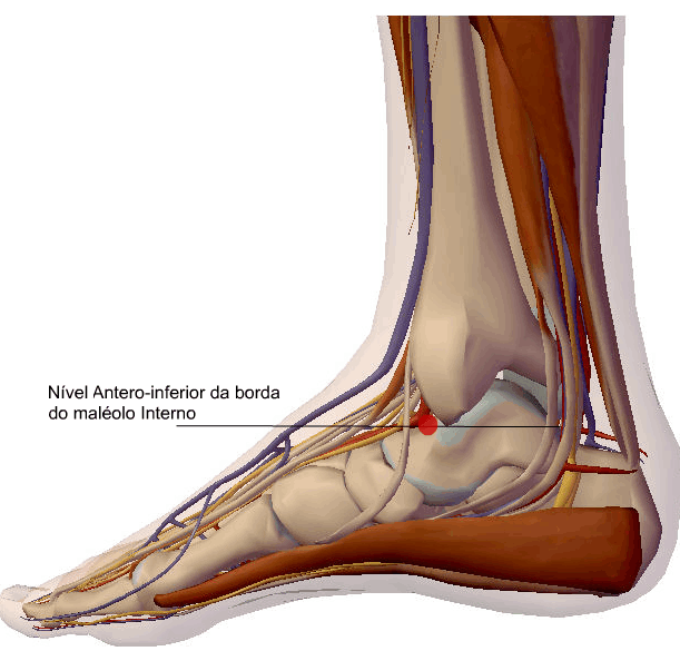 Situa-se sobre a margem medial do pé, numa reentrância localizada, proximal à cabeça do 1º metatarsiano, na linha da mudança de cor da pele, entre a pele da região plantar e do dorso do pé.