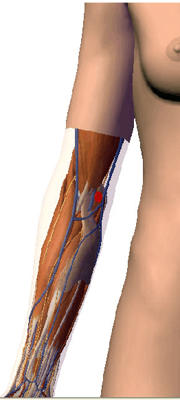 Situa-se numa reentrância muscular localizada a meia distância entre a epitróclea do úmero e a extremidade medial da prega do cotovelo.