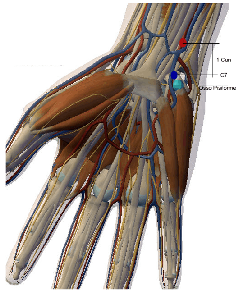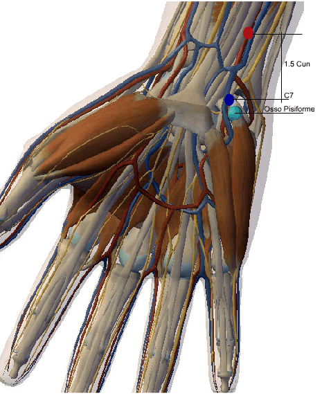 Situa-se a um e meio tsun proximal à prega de flexão do punho, sobre a artéria cubital e sobre a margem radial do tendão do músculo flexor ulnar do carpo, proximal ao osso pisiforme.