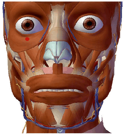 A agulha de Acupuntura atravessa a pele e o tecido celular subcutâneo e se relaciona com os ramos dos nervos facial e infra-orbital.