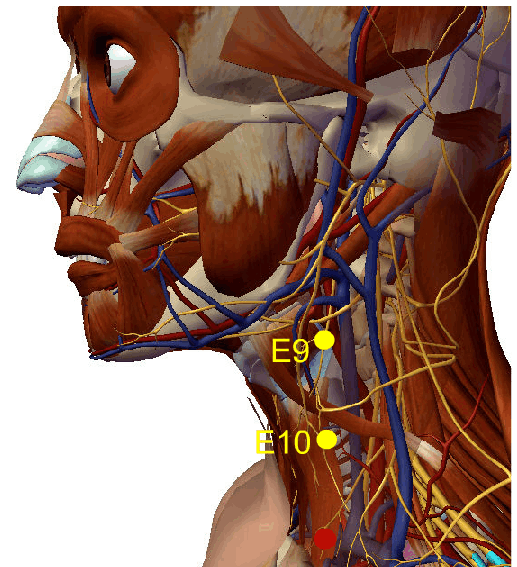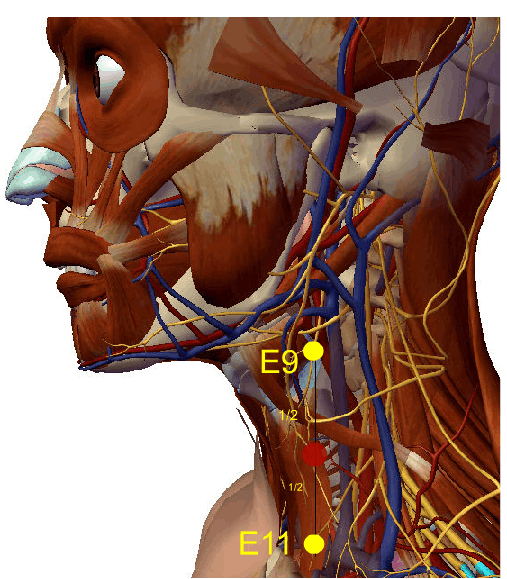 Tremor dos músculos faciais: TA-17 ( Yifeng ), E-4 ( Dicang ), E-2 ( Sibai )