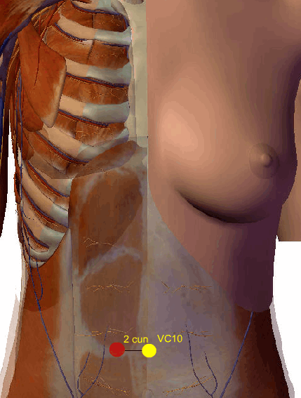 Constipação: E-40 ( Fenglong ), BP-16 ( Fuai ), BP-13 ( Fushe )