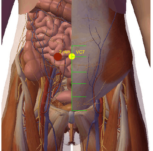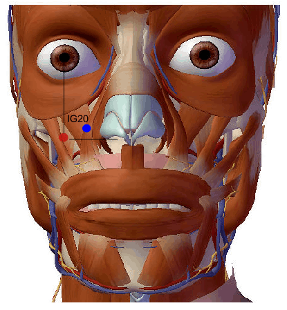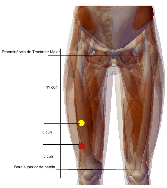 A agulha de acupuntura atravessa a pele e o tecido celular subcutâneo, penetra entre o músculo orbicular do olho e o músculo quadrado do lábio superior e atinge o forame infra-orbital; relaciona-se superficialmente com os ramos do nervo facial e, profundamente, com o nervo infra-orbital.