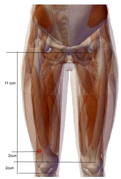A agulha de Acupuntura atravessa a pele e o tecido celular subcutâneo e penetra entre o lado medial do tendão do músculo fibular longo e o tendão do músculo fibular curto do hálux; relaciona-se superficialmente com os ramos dorsais e, profundamente, com os ramos do nervo fibular superficial.