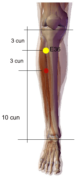 Ponto Iunn do C.E.Principal do Estômago que recebe o C.E.Luo Transversal do C.E.do Baço/Pâncreas, ocorrendo a ligação Ying/Yang