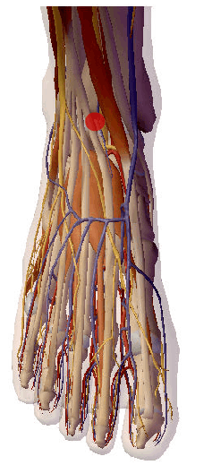Situa-se numa reentrância que se acha entre a junção dos 2º e 3º metatarsianos.
