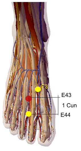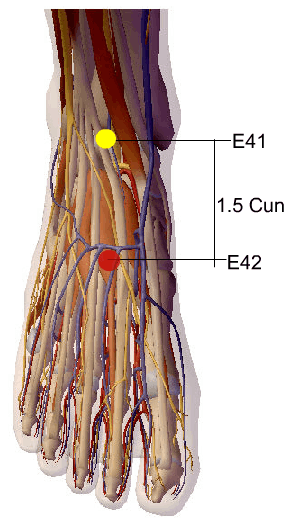 Situa-se a um e meio tsun distal ao E-41 ( Jiexi ), sobre o ponto mais alto do dorso do pé, onde se palpa a artéria pediosa.
