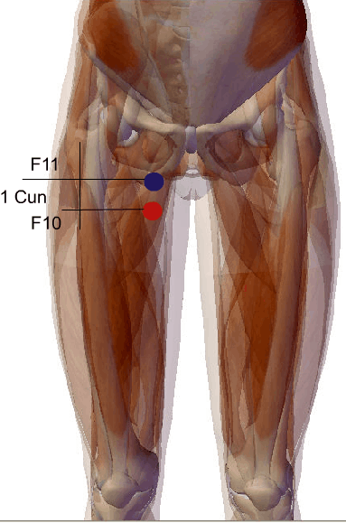 A agulha de Acupuntura atravessa a pele e o tecido celular subcutâneo e atinge o músculo pectíneo; relaciona-se superficialmente com o nervo cutâneo-femoral do nervo genitofemoral e, profundamente, com os ramos musculares do nervo femoral.