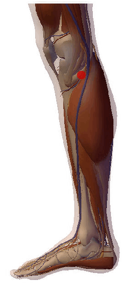 A agulha de Acupuntura atravessa a pele e o tecido celular subcutâneo, penetra pela parte medial da cabeça medial do músculo gastrocnêmio e atinge o músculo poplíteo; relaciona-se superficialmente com os ramos cutâneos mediais do nervo safeno e, profundamente, com o nervo tibial.