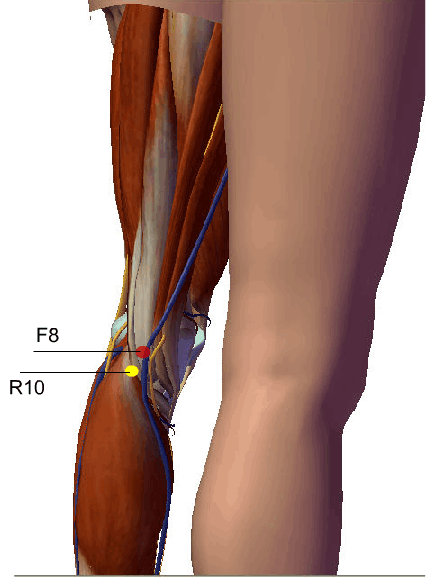 A agulha de Acupuntura atravessa a pele e o tecido celular subcutâneo, penetra pela margem anterior do músculo sartório e atinge o músculo vasto medial; relaciona-se superficialmente com o nervo cutâneo-femoral anterior e, profundamente, com os ramos musculares do nervo safeno ( ramo do nervo femoral ).