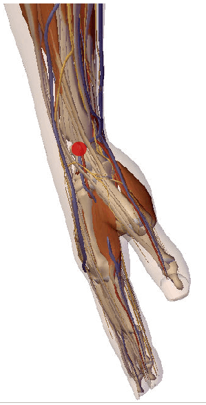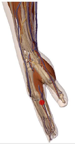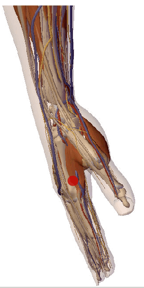 Situa-se numa concavidade distal à articulação metacarpofalangiana, na margem radial; fechar a mão para localizar. Situa-se no prolongamento da dobra de flexão metacarpofalangiana.