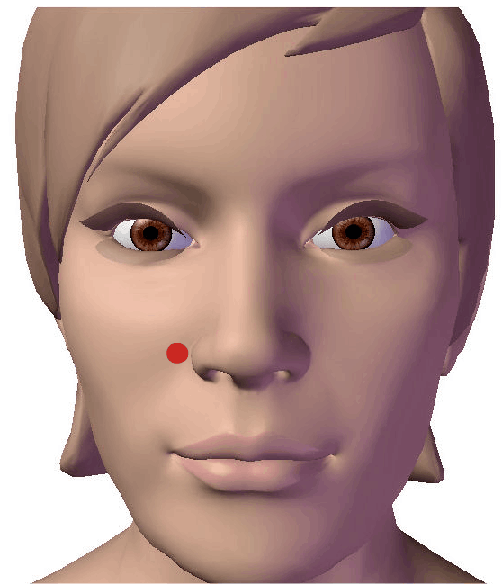 Situa-se a meio tsun lateral ao ponto de Acupuntura VG-26 ( Renzhong ), situado no filtrum nasal.
