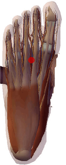 Situa-se no meio da planta do pé, na altura correspondente à articulação metatarsofalangiana dos 2º e 3º dedos do pé.