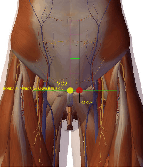 Situa-se um tsun proximal ao R-11 ( Henggu ) e a meio tsun lateral ao ponto VC-3 ( Zhongji ).