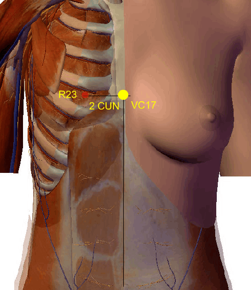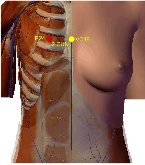 Situa-se no 4º espaço intercostal, a dois tsun lateral à linha média, na horizontal traçada pelo ponto VC-17 ( Shanzhong ).