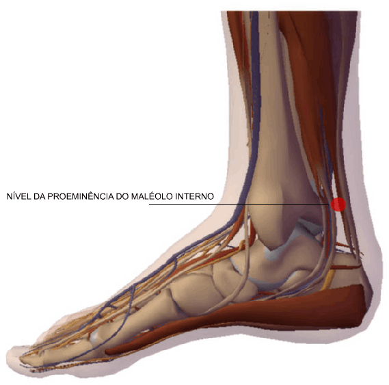 Situa-se a meia distância entre a parte mais saliente do maléolo interno e o tendão do calcâneo, no local onde se percebe o batimento da artéria tibial posterior.